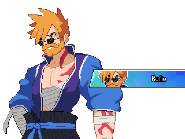 Redomado aventurero en una resentida misión. Su bufanda ajada y su actitud despreocupada esconden un oscuro pasado.